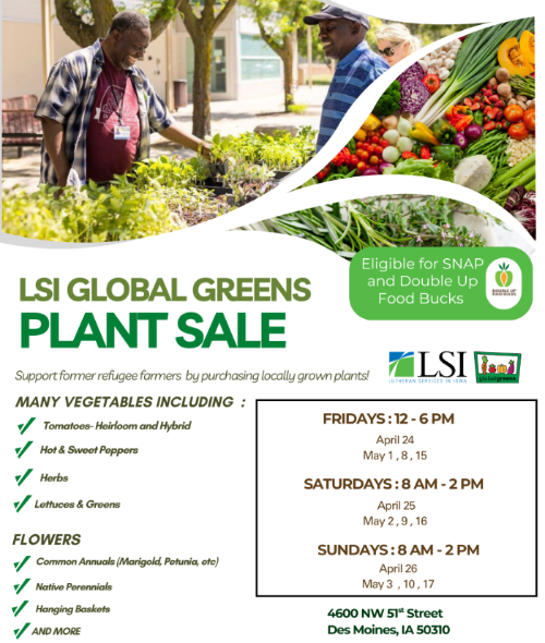 The Spring Plant Sale is an important part of making this program possible. The plants sold during the sale are grown and cared for by the refugees and immigrants in our program. Every purchase helps support training, supplies, and the ongoing work of LSI as we walk alongside newcomers adjusting to life in Iowa.